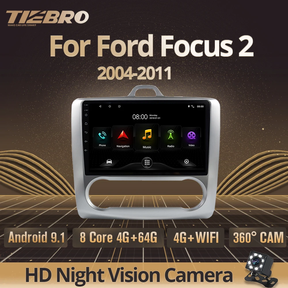 Автомагнитола TIEBRO 2din Android 9,0 для Ford Focus EXI MT 2 3 Mk2 2004 2005 2006 2007-2011 2Din Dvd плеер GPS мультимедийный плеер