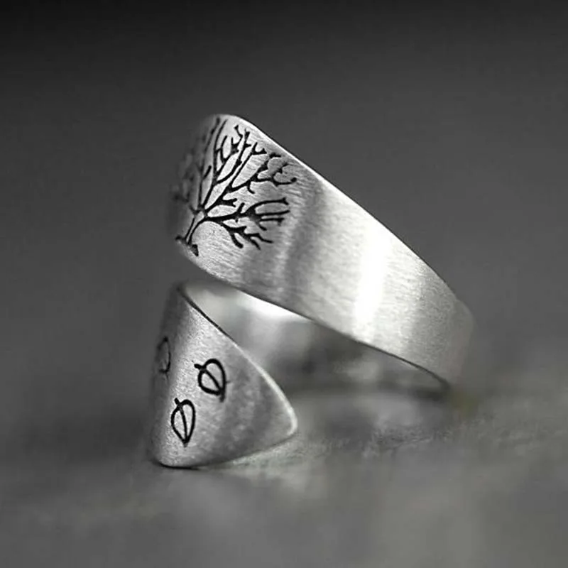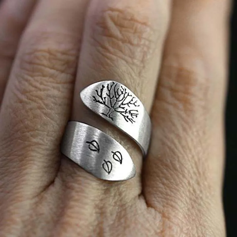Женское Винтажное кольцо из нержавеющей стали, кольцо с листьями и деревом жизни серебристого цвета, модные ювелирные украшения, подарок на день матери