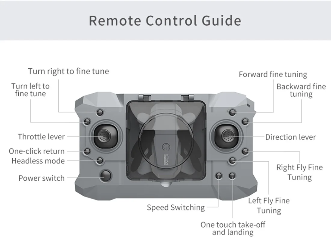 Функции:Вверх/вниз, вперед/назад, влево/вправо, боковой светильник F, светодиодный светильник, Безголовый режим, автоматическое возвращение одной кнопкой, режим удержания высоты, Поворот на 360 °, WiFi FPV