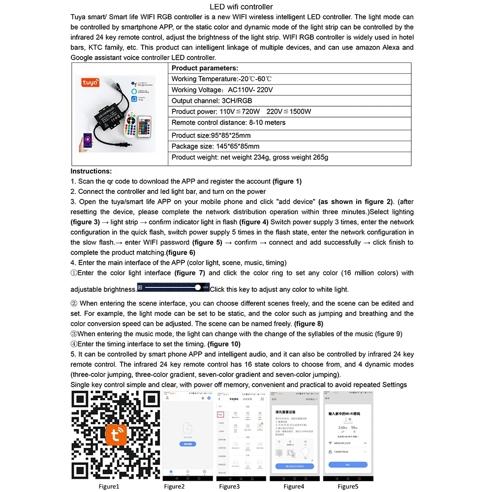 Умный Wifi RGB контроллер 1500 Вт с 24 клавишами ИК-пульт дистанцио...