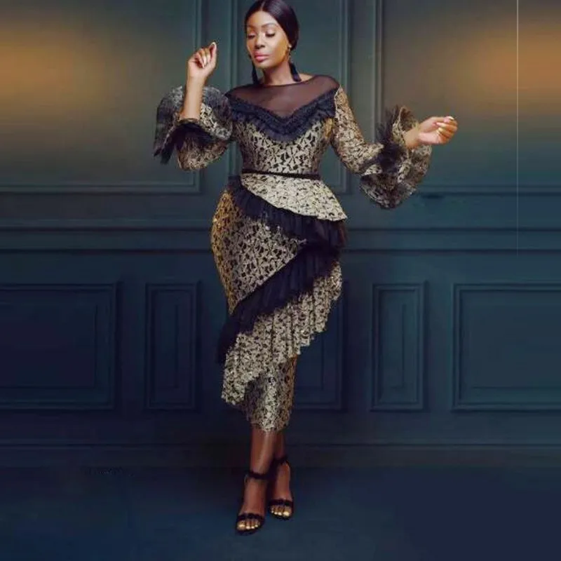 Aso Ebi черные короткие коктейльные платья для девочек из прозрачно...