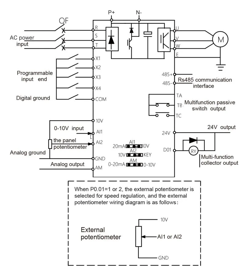 У нас есть опытные инженеры, научное производство и команда менеджмента с строгими системами контроля качества, частотный инвертор оснащен расширенными функциями, как показано ниже:01 V/F Управление, векторное управление и управление выходным крутящим моментом;02Built-in RS-485 интерфейс связи03 компактный размер, простота установки;04 с потенциометром скорости и внешней панелью;5. Синхронное управление и пропорциональное управление синхронизацией;0616 скромный контроль скорости, может работать автоматически;07 можно выбрать несколько команд или частотных каналов;08 можно частично или полностью заблокировать клавиши (разблокировка аналогового потенциометра);09 реле, как правило, открытое или закрытое, и два выходных разъема высокой конфигурации имеют 100 видов дополнительных способов;106 цифровых оптоизолированных входов, 100 видов опций;113 аналоговый вход, 1 канал аналогового выхода;12. Имея функцию частоты текстильного маятника, он может широко применяться для многих видов текстиляОборудование;13встроенный пользовательский таймер/счетчик;14 Встроенная функция регулирования PID для облегчения контроля температуры по замкнутому контуру,Давление и напряжение.15. При нулевой скорости может достигать выходного момента 0-100% регулируемого крутящего момента, с нулевым тормозомФункция, вместо применения иностранного инвертора на грузовом лифте и кране.