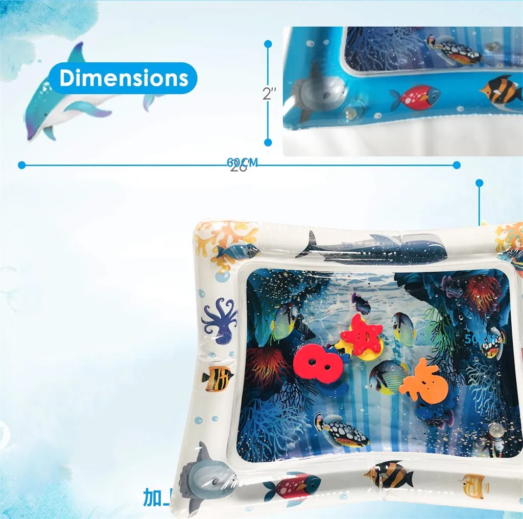 Потрясающий, Привлекательные графические часы, когда ваш ребенок входит в наш аквариум, с широкими глазами и очарованными яркими цветами, острыми Контрасты и милые плавающие игрушки. Дождь или блеск-это время живота! Ваш ребенок Будет стараться поймать и летучей мыши яркие цветные игрушки, как они плавают. Этот детский коврик для всплеска обеспечит часы, стимулирующие качество и Здоровое удовольствие.