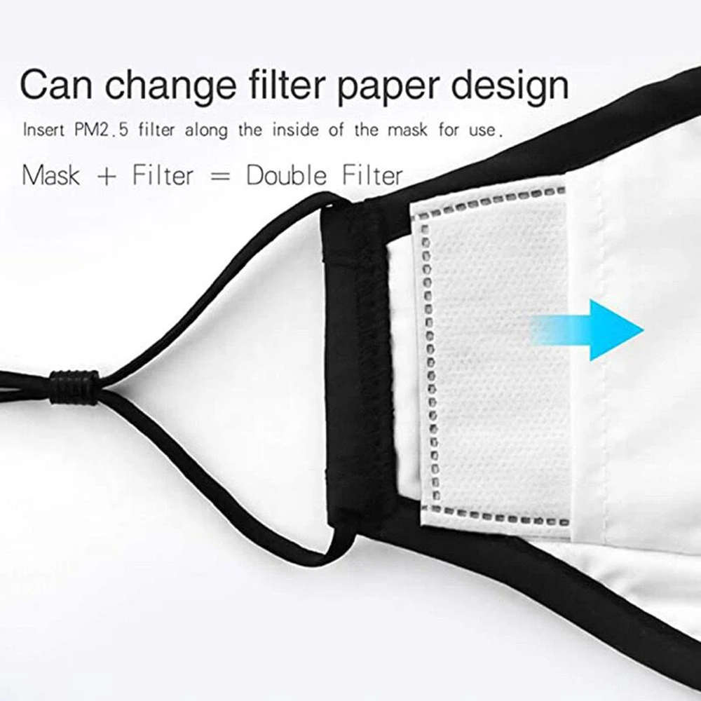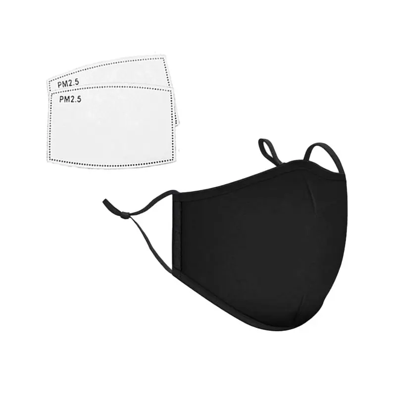 Хлопковая черная маска для лица PM2.5 Пылезащитная маска для рта с 6 фильтрами из активированного угля корейские маски