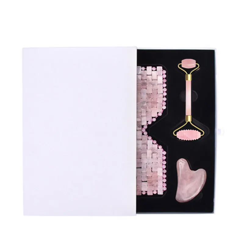 Розовый кварц нефрит маска для глаз ролик для массажа лица доска гуаша гуашь скребок Натуральный камень холодной терапии Маска для лица массажер для лица