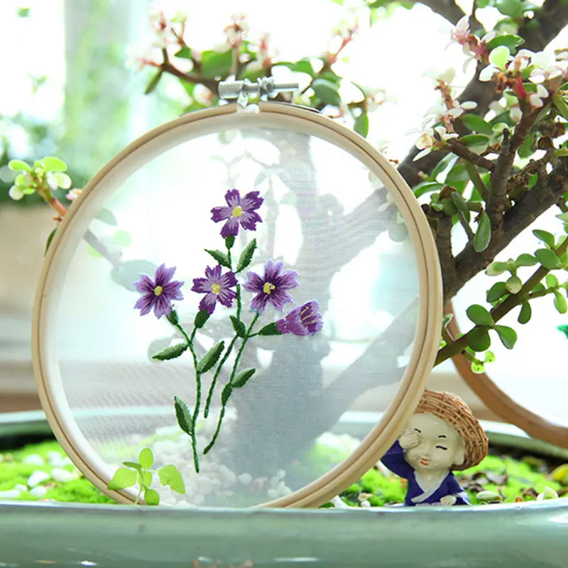 Набор для вышивания с изображением цветов, растений, круглая ткань,...