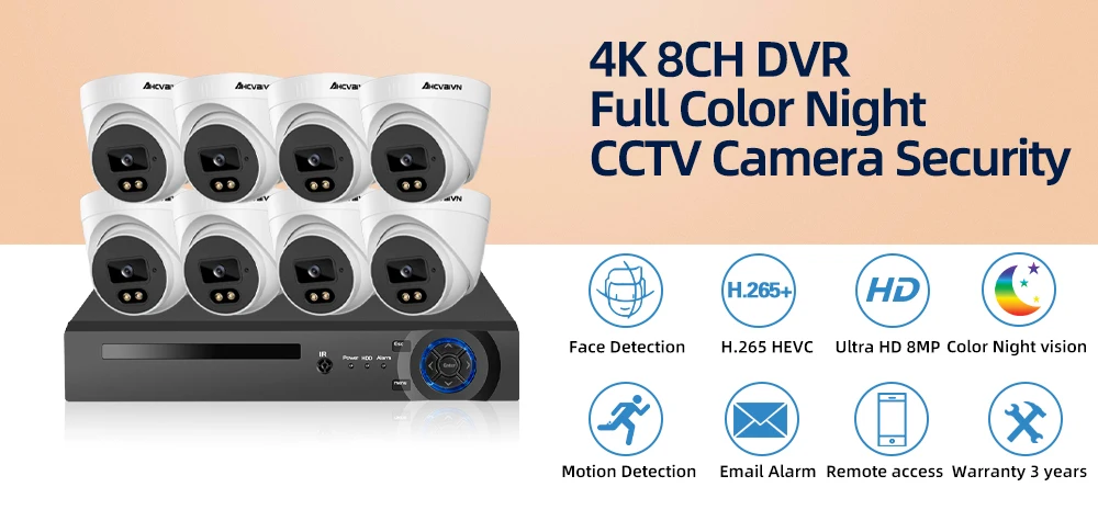 1.8MP Ультра HD видео, улучшенное H.265 видео сжатие;2.HD 8MP AHD камера и 6 в 1 гибридный цифровой видеорегистратор;3. Поддержка распознавания и воспроизведения лица;4. Все камеры поддерживают полноцветное ночное видение;5. Все камеры имеют корпус из АБС-пластика6. Ультра HD дневное и ночное видение, подключи и работай, легко настроить;7. Поддержка Android,iphone,ipad,pc,vms view;8. Поддержка обнаружения движения, оповещения по электронной почте, воспроизведение видео, многоязычный;9. Удаленный просмотр в любом месте в любое время;