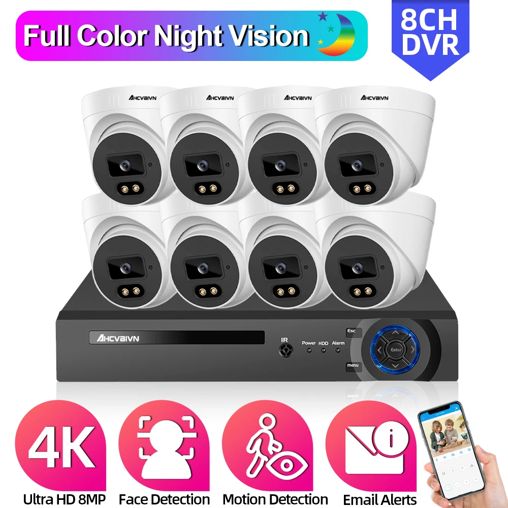 Система видеонаблюдения H.265, 8 каналов, AHD DVR, 4K, 8 Мп, цветные камеры наблюдения, комнатная система XMeye, 4 шт.8 шт.