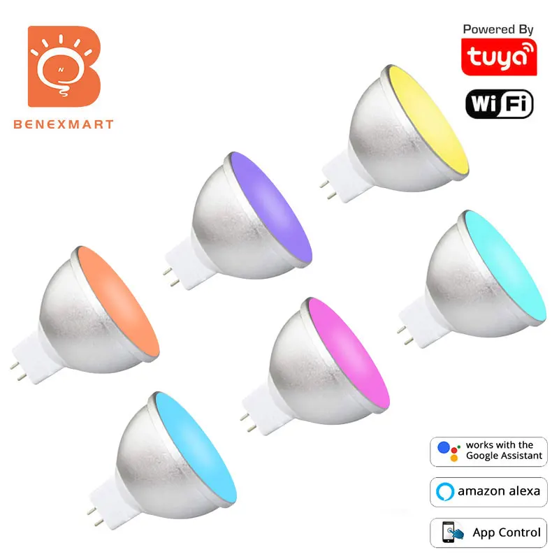 Benexamrt Tuya WiFi 5 Вт Gu5.3 MR16 Светодиодный светильник, лампа 12 В RGBW с регулируемой яркостью, точечный светильник, лампа SmartLife APP Alexa Google Home Control