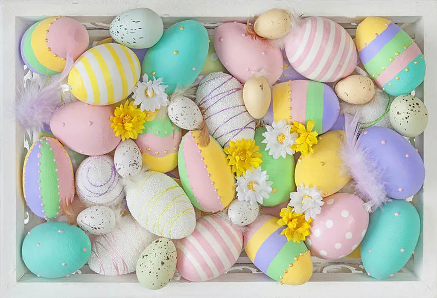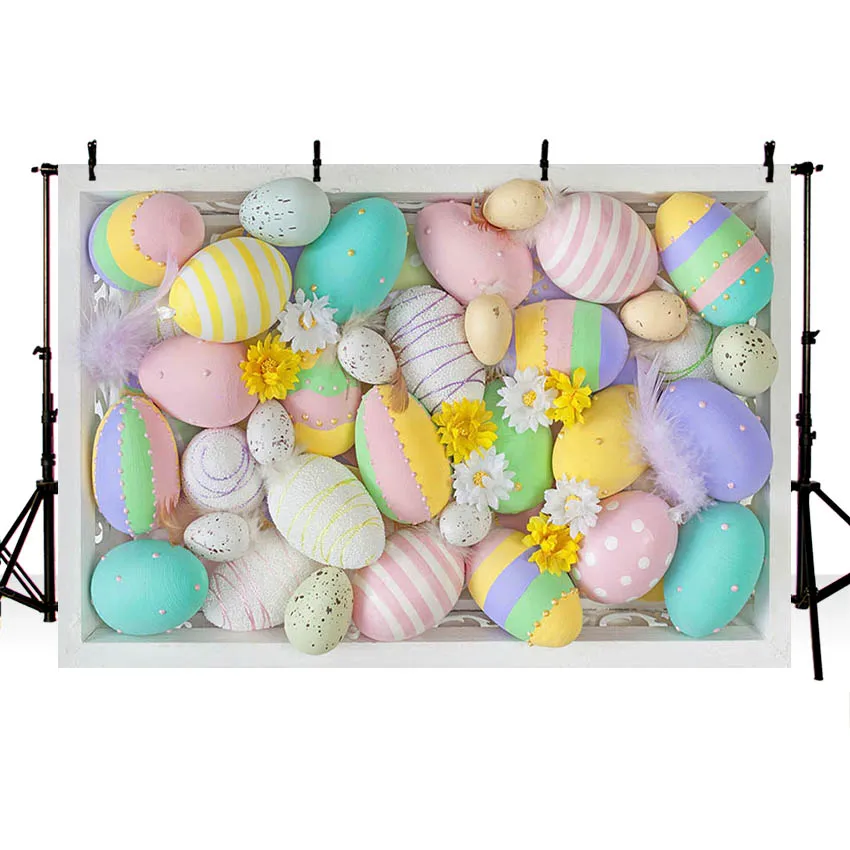 Фон для фотосъемки Avezano с пасхальными яйцами весенними цветами перьями