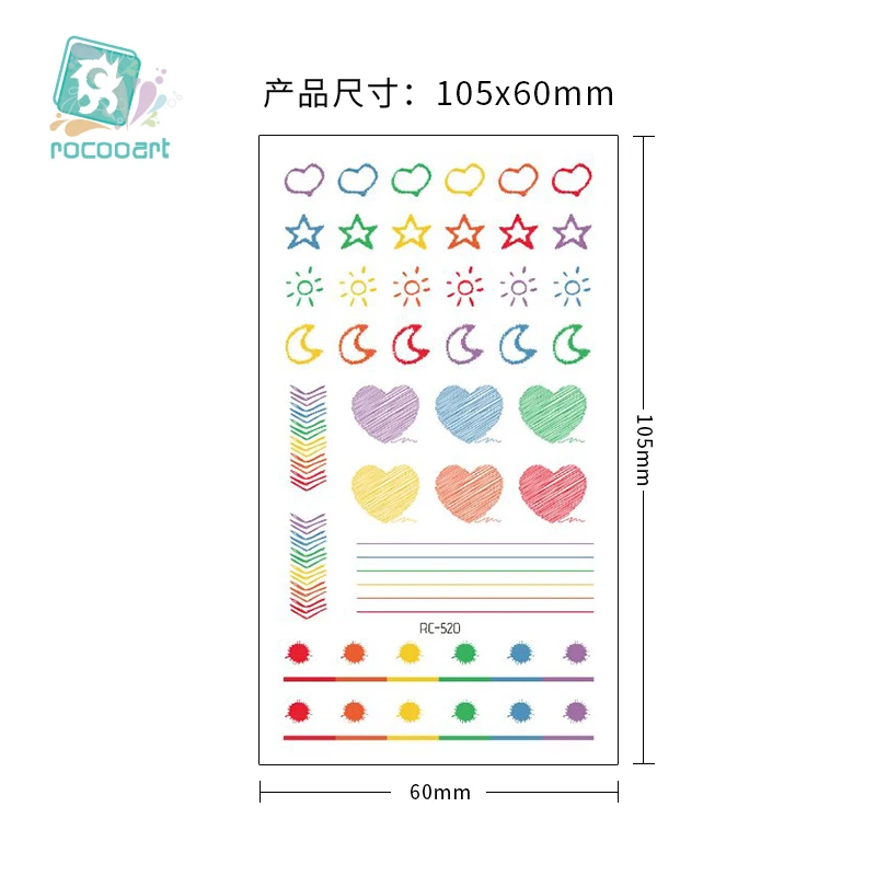 Rocooart красочные маленькие татуировки Радуга поддельные татуировк...