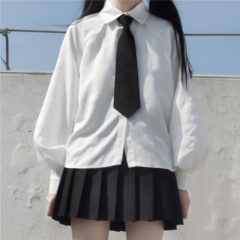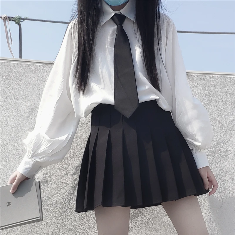 Новинка лета 2021, свободная тонкая рубашка с галстуком в Корейском стиле, женская школьная форма с завышенной талией, комплект с плиссированной юбкой