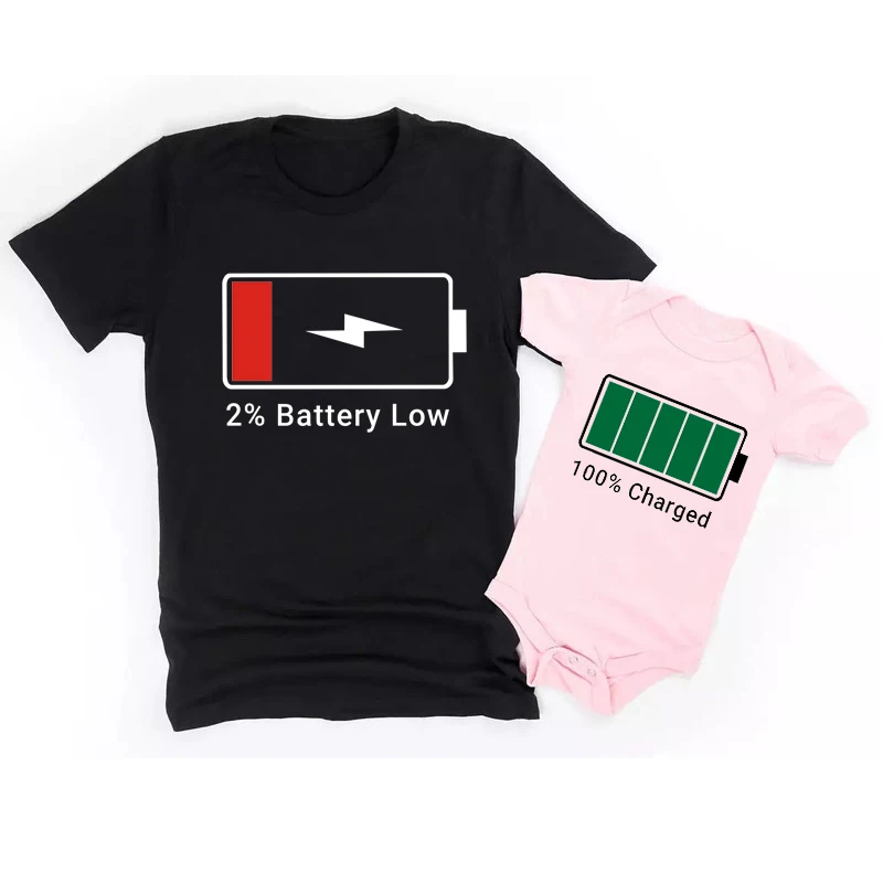 Забавные Семейные рубашки Мама и я; Низкий заряд аккумулятора; Руба...