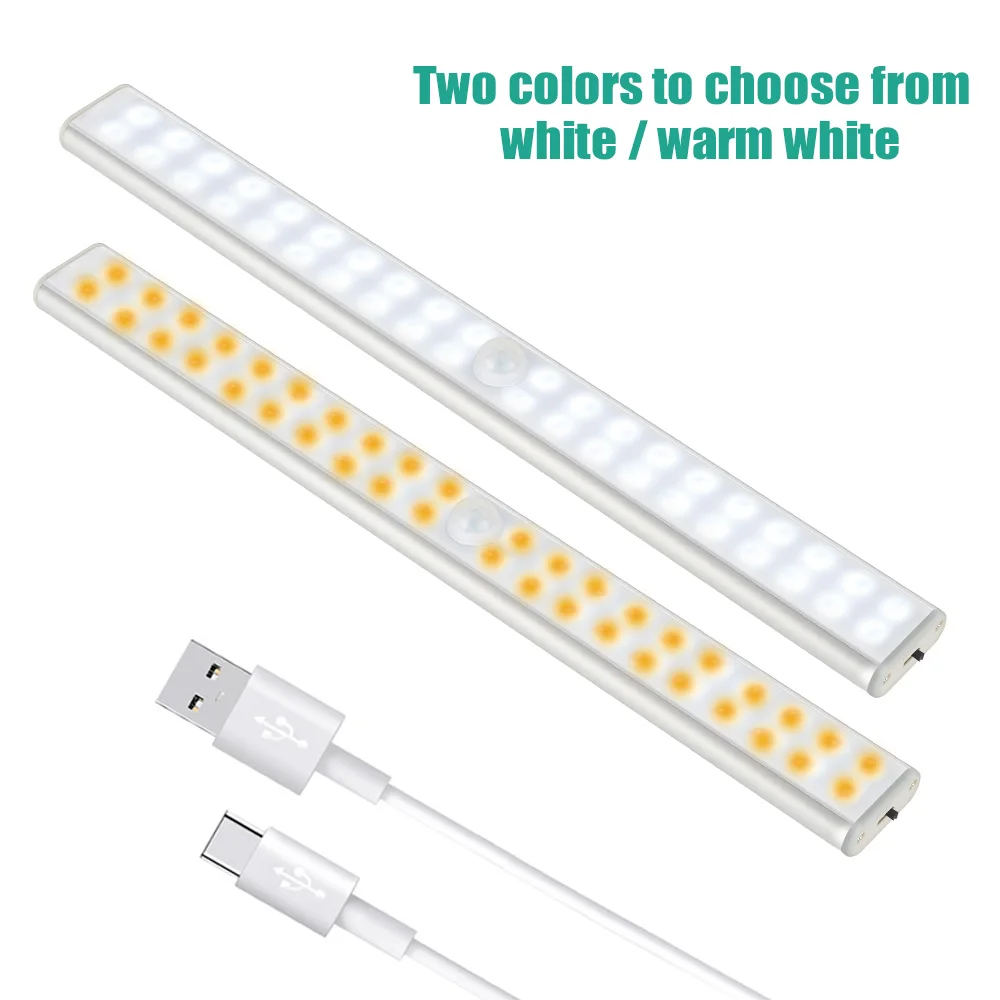 Характеристики: светильник; Цвет: белый/теплый белыйКоличество СВЕТОДИОДНЫЙ: 60 шт. SMD 35283 режима: вкл (мгновенное включение) -- ВЫКЛ (мгновенное выключение) -- G (датчик движения)Датчик: датчик движения и светильникПерезаряжаемые Батарея: Встроенный 1000 мА/ч, литий Батарея 3,7 VИндукционное расстояние: 10 футов (3 м)Светодиодный срок службы: 50000 часовУгол влияния: 100 ° * не водонепроницаемый, только для использования в помещении.Размер: как показано на картинке, посылка:1 x освещение шкафа * 1 x USB кабель * 1 x железный лист * 1 x Руководство пользователя
