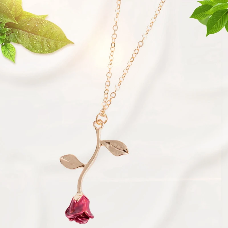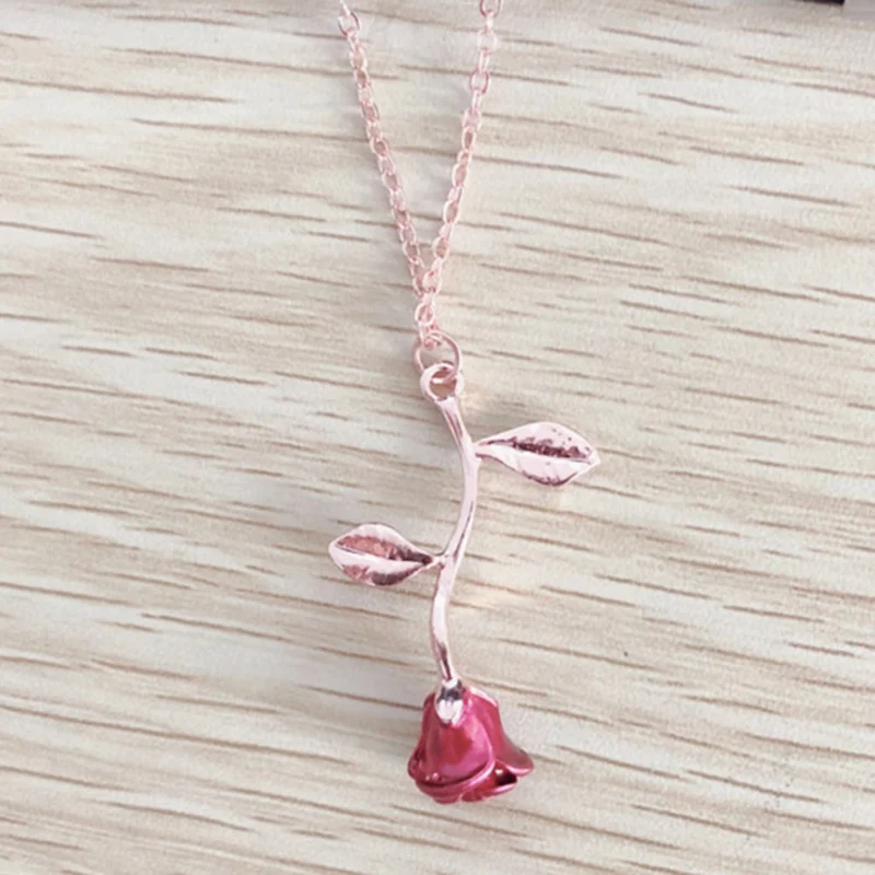 Ожерелье женское винтажное на длинной цепочке с подвеской-розой, простое ожерелье, украшение на осень и зиму, День Св. Валентина