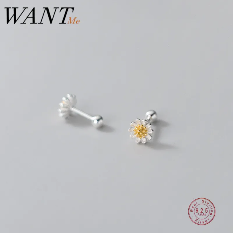 Женские серьги-гвоздики WANTME, из серебра 925 пробы, романтические бусы пробы, с ромашками, шикарные очаровательные