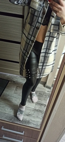 Очень странный материал-очень плотная синтетика. Сидит классно, стройнит, вытягивает силуэт.