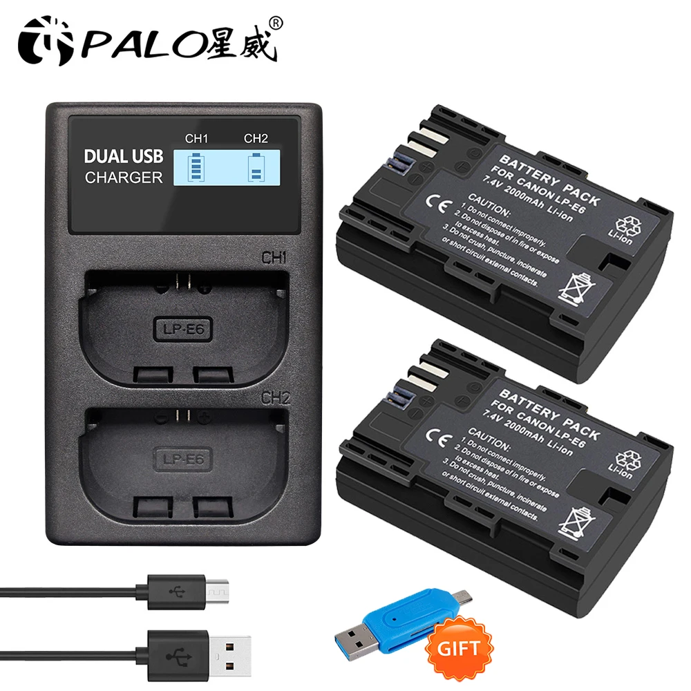 Пало LP E6 LPE6 LP-E6 E6N Батарея + двойной Зарядное устройство для цифровой однообъективной зеркальной камеры Canon EOS 5DS R 5D Mark II 5D Mark III 6D 7D 80D EOS 5DS R Камера батареи