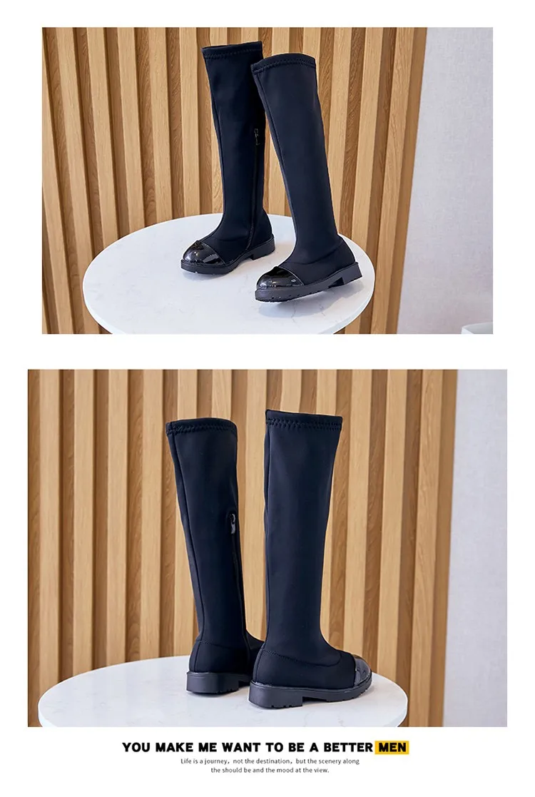 Осенне-зимние детские высокие сапоги для девочек, модные классные резиновые сапоги до колена, Детские мотоциклетные сапоги, ботинки мартинсы для девочек