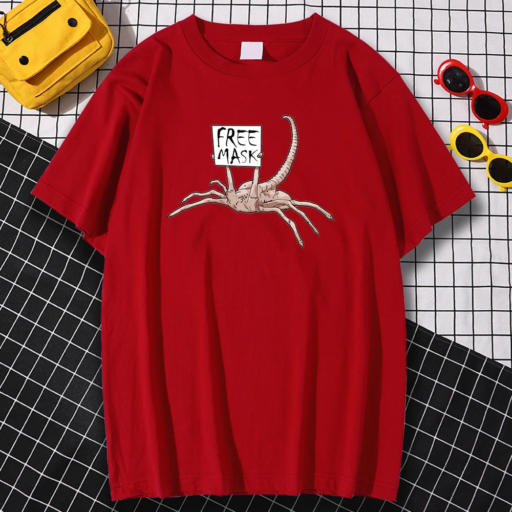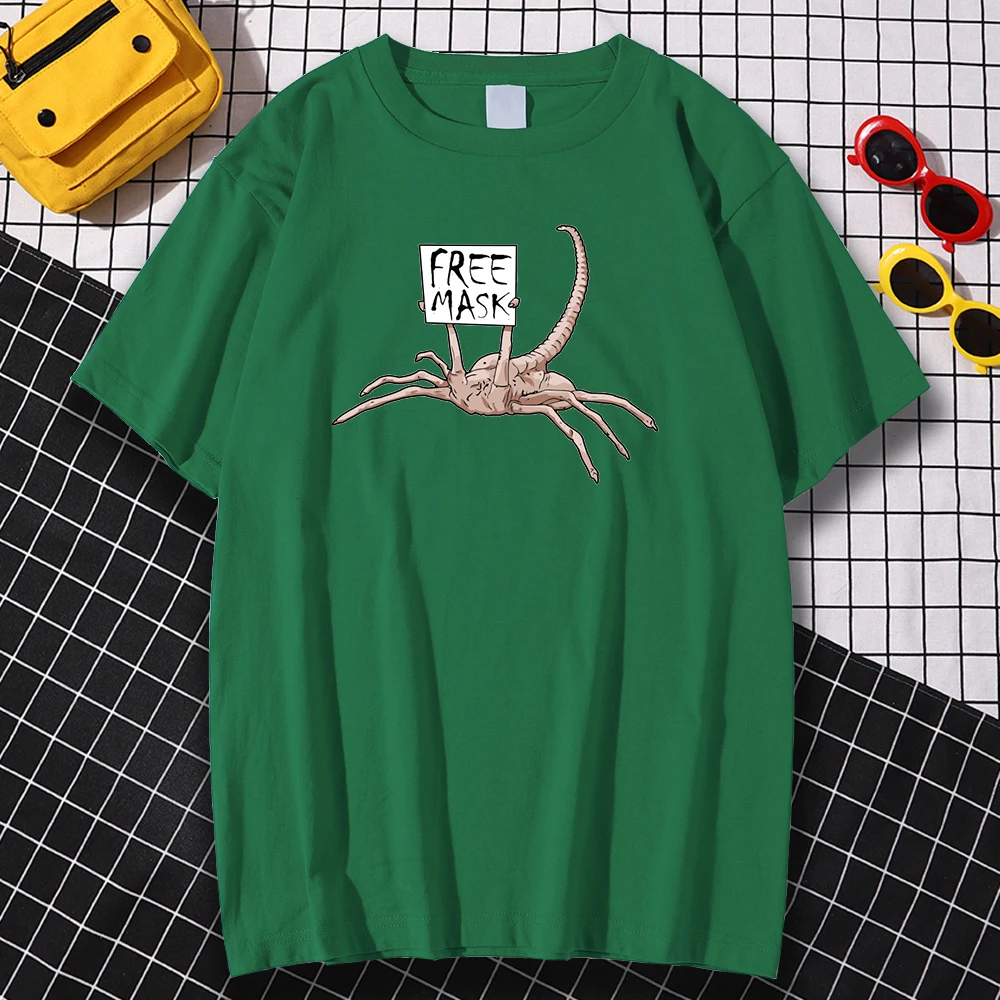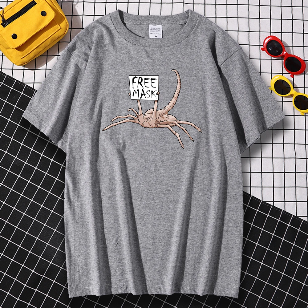 Футболка мужская с принтом маски Alien Free, брендовая тенниска с коротким рукавом, Винтажная Майка в стиле панкхип-хоп с круглым вырезом, одежда в уличном стиле с принтом из мультфильмов