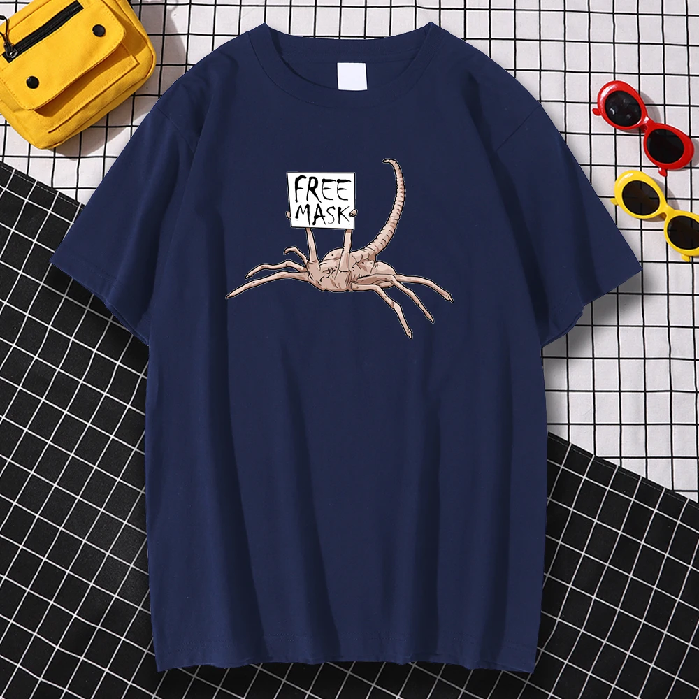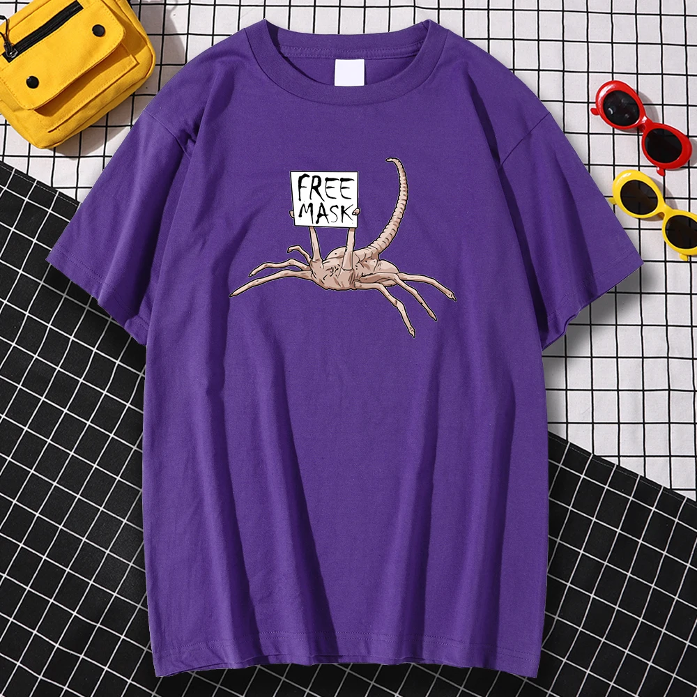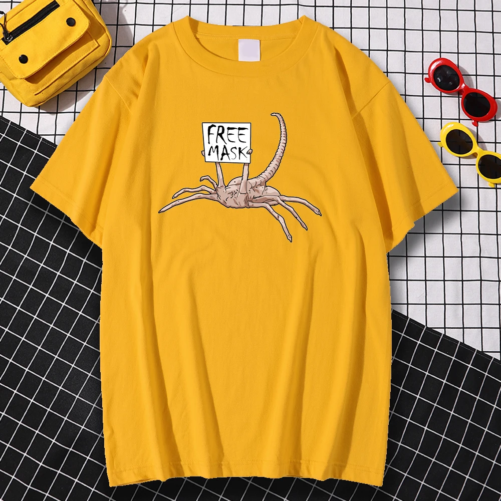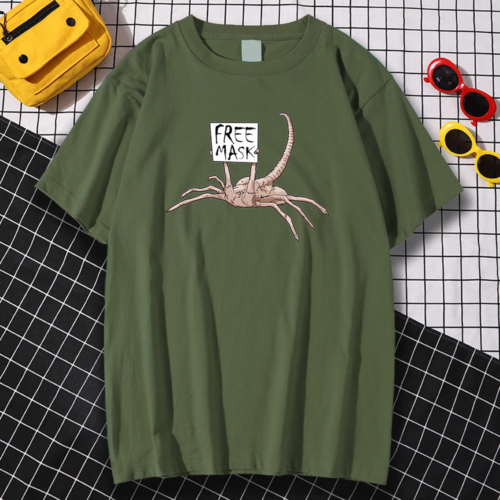 Футболка мужская с принтом маски Alien Free, брендовая тенниска с коротким рукавом, Винтажная Майка в стиле панкхип-хоп с круглым вырезом, одежда в уличном стиле с принтом из мультфильмов