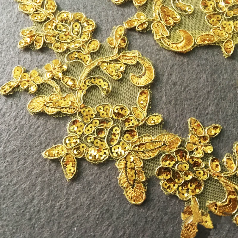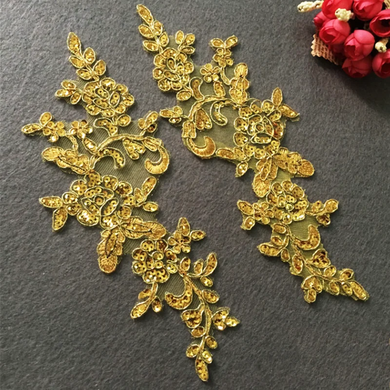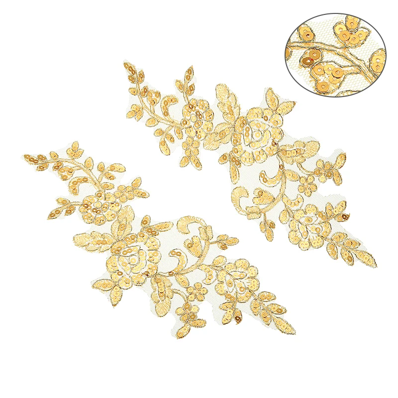 1 пара золото Цвет Venise кружевной отделкой с цветочным рисунком с блестками с аппликацией вышивкой патча свадебное платье кружево для художественного оформления ногтей, ручная работа