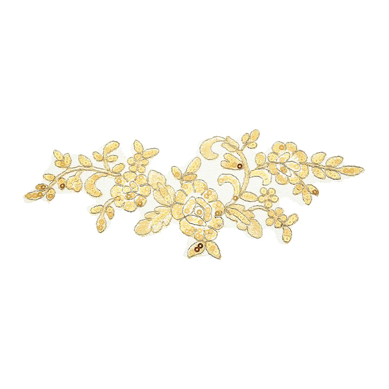 Восхитительный и Нежный Золотой цветочный мотив с аппликацией из пайеток.