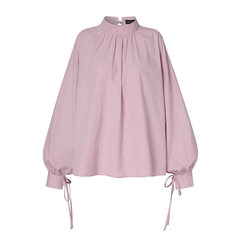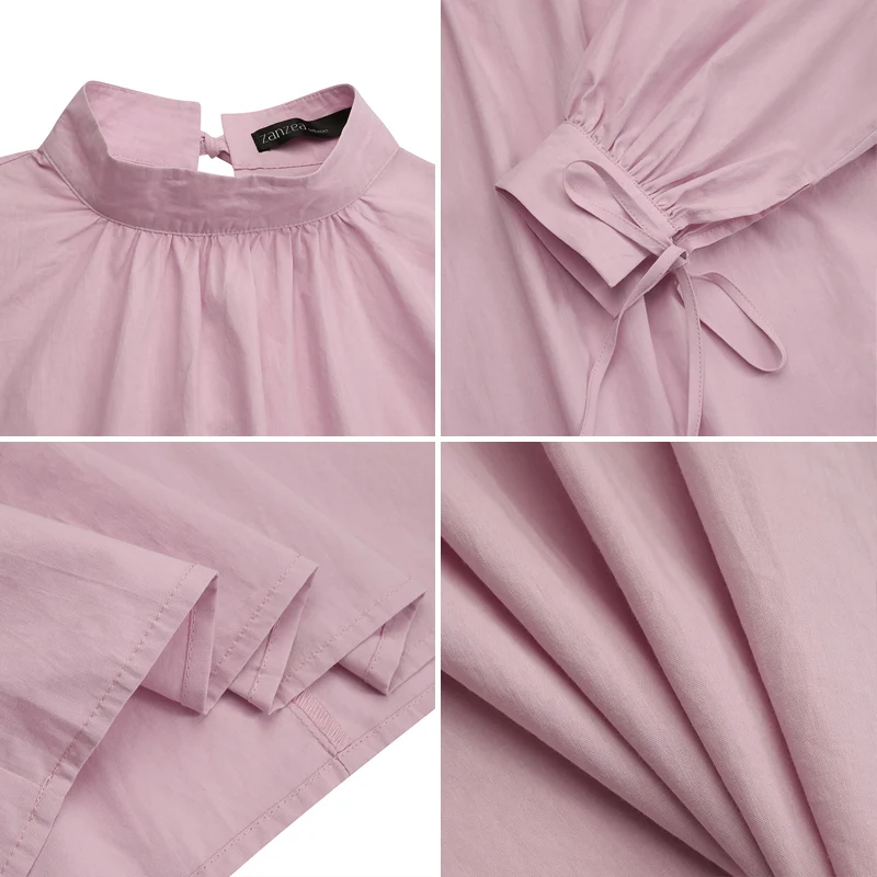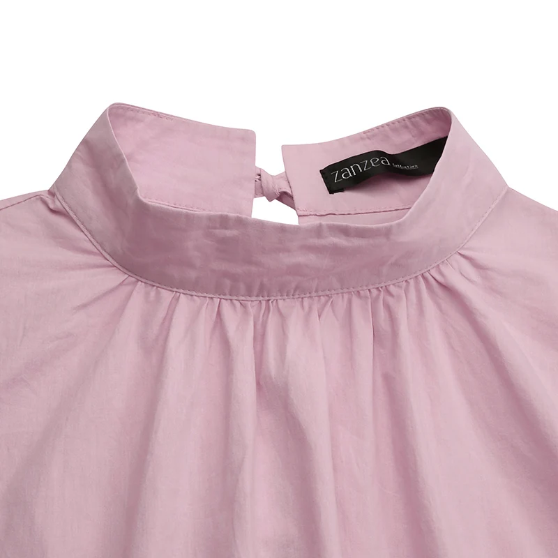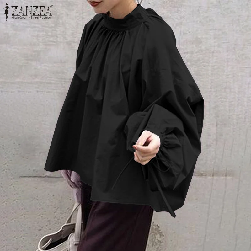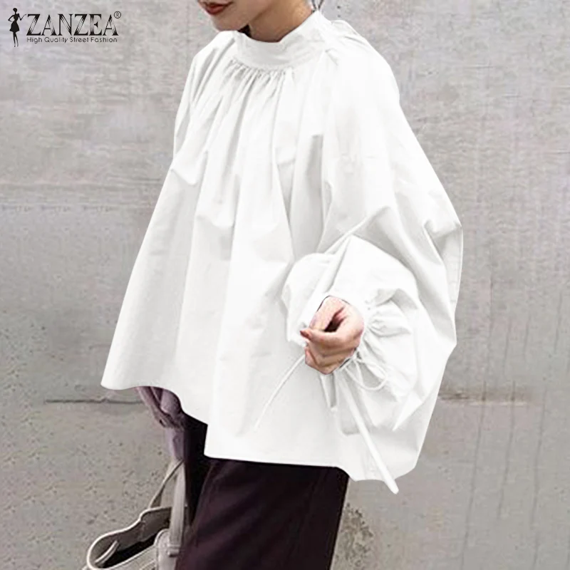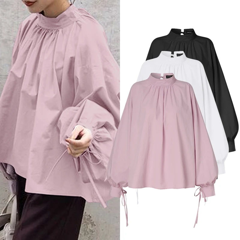 Модная женская рубашка ZANZEA, повседневные однотонные плиссированные топы, женские офисные блузы, блузка с длинным пышным рукавом, элегантная Весенняя 2022 сорочка