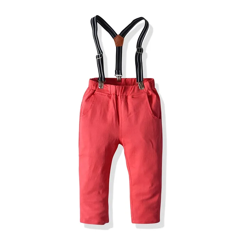 Комплект одежды для мальчиков, рубашка в клетку с галстуком-бабочкой + штаны на подтяжках, 2 шт.