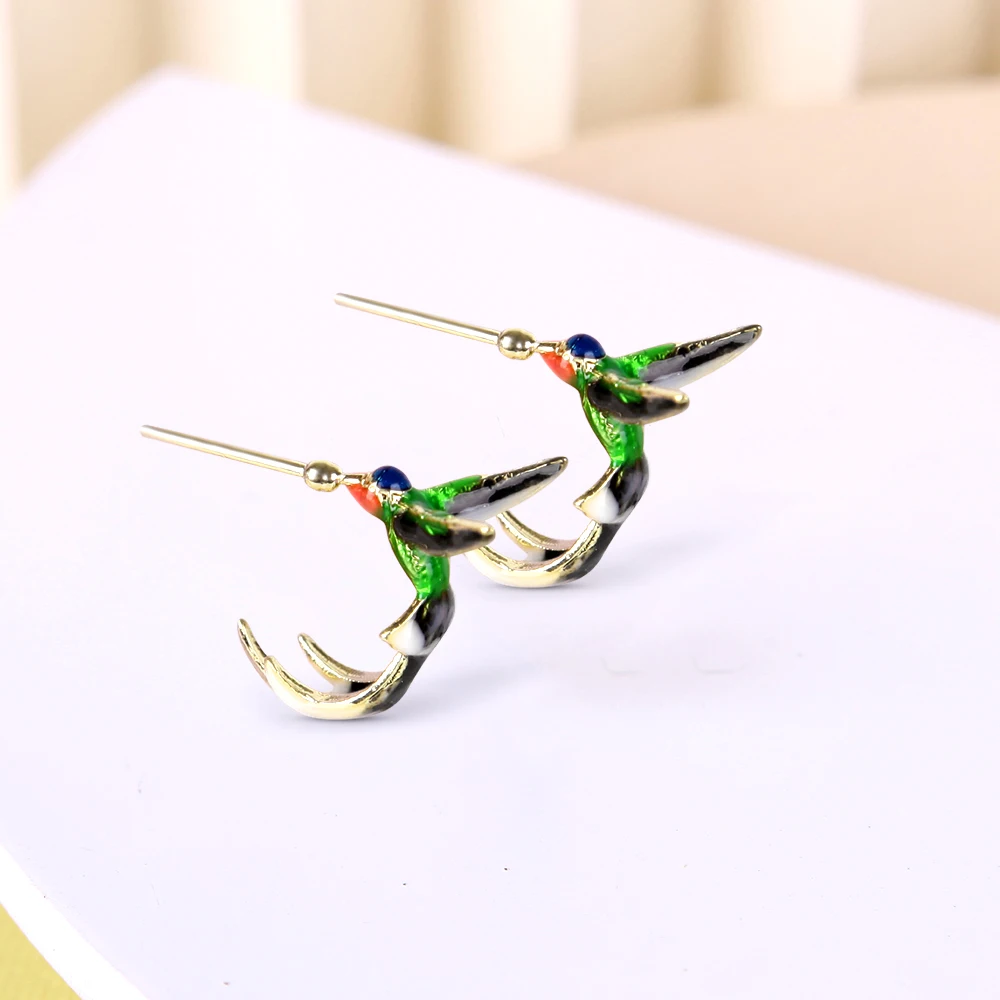 Серьги с рисунком летающих Колибри, модные украшения с животными, милые серьги
