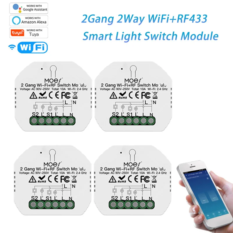 Беспроводной модуль дистанционного управления умсветильник льником Tuya Smart Life, 2 клавиши, Wi-Fi + RF433, работает с Alexa Google Home, умный дом