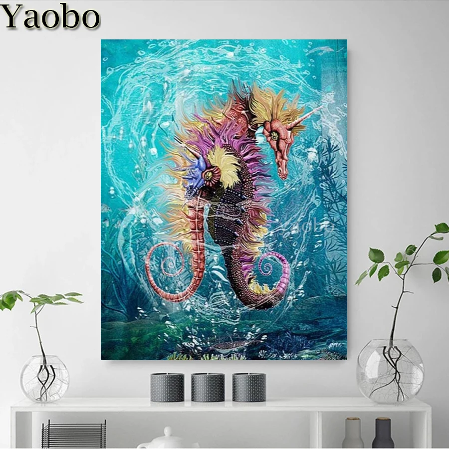 Алмазная мозаика 5D с полным заполнением, картина из квадратных страз, морская лошадь, океанское животное, Набор для вышивки крестиком, украшение для стен дома, 2021