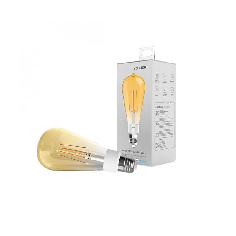 Умная светодиодная лампа Yeelight Smart LED Filament Bulb YLDP23YL - подключается по протоколу Wi-Fi 2.4Ггц и управляется через приложения Mi Home и поддерживает экосистему HomeKit от Apple. Лампы Yeelight Smart LED Filament Bulb могут управляться голосом, через умного помощника Алису, а так-же могут быть задействованы в автоматизации с датчиками умного дома Xiaomi Mi Home.