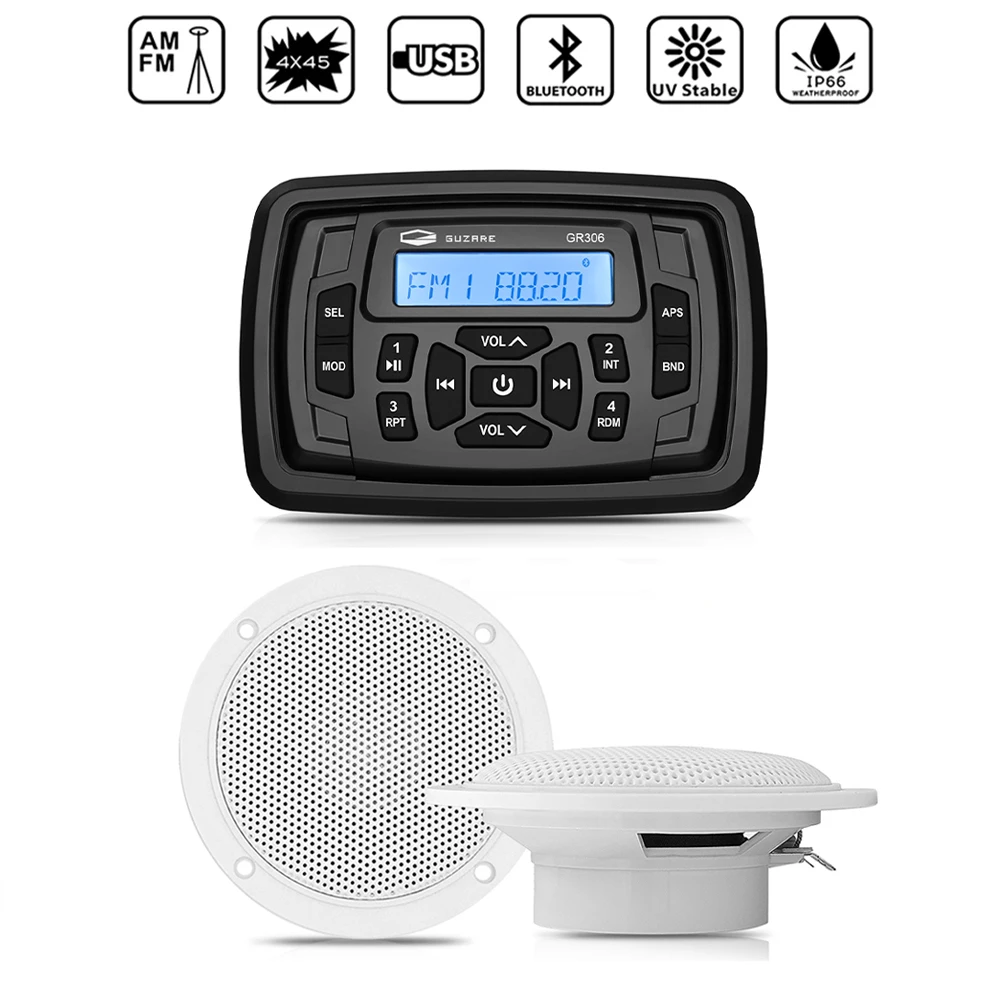 Водонепроницаемый Морской Стерео Bluetooth Радио Аудио FM AM приемник MP3 плеер + 4inch морских колонки для RV ATV бассейн Yacht мотоцикла
