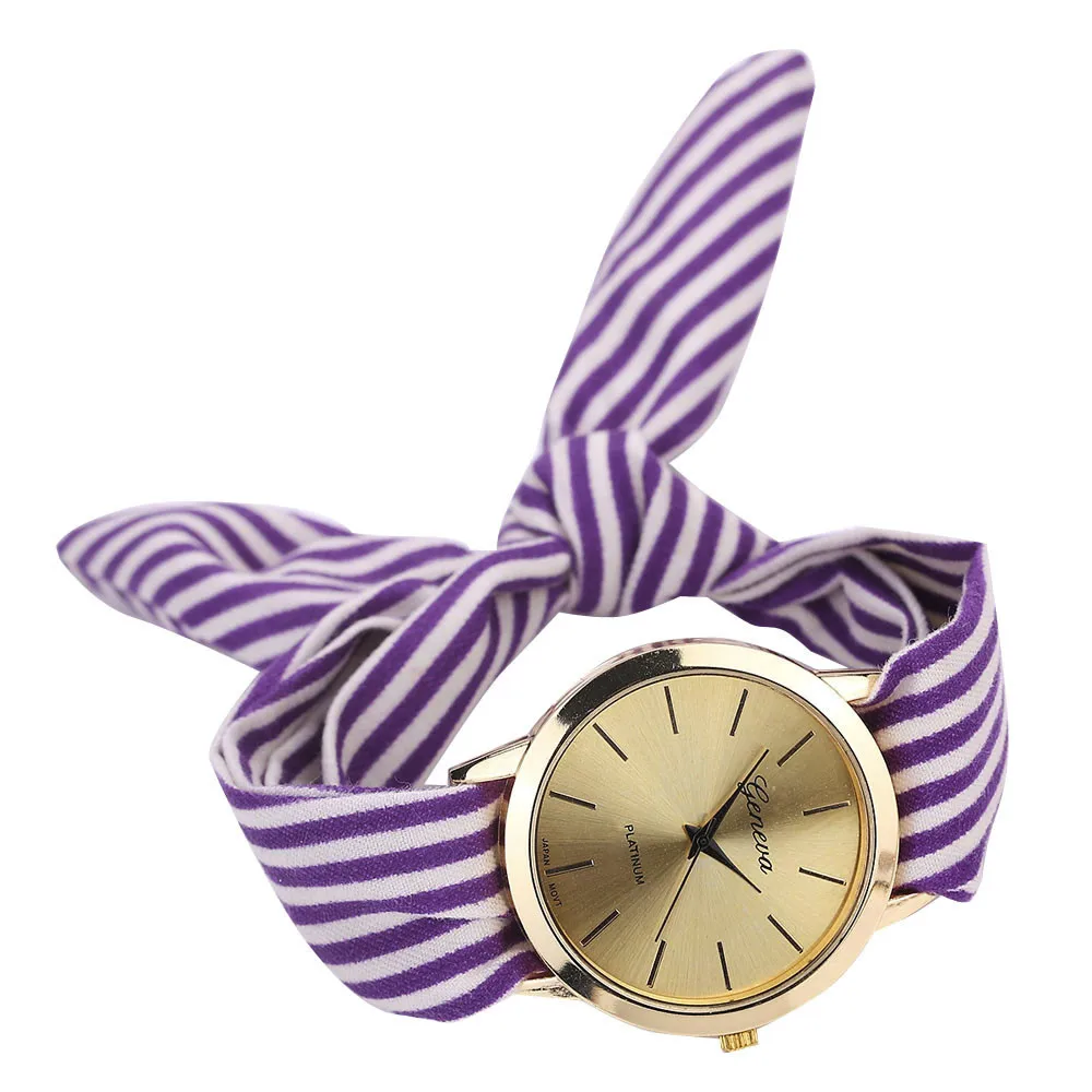 Женские часы для девочек, новые модные кварцевые наручные часы в полоску с бантом и цветочным принтом, роскошные ЖЕНСКИЕ НАРЯДНЫЕ часы