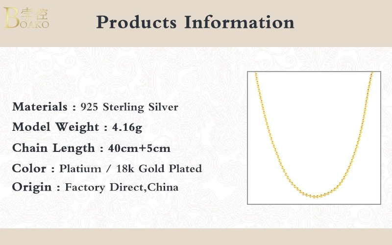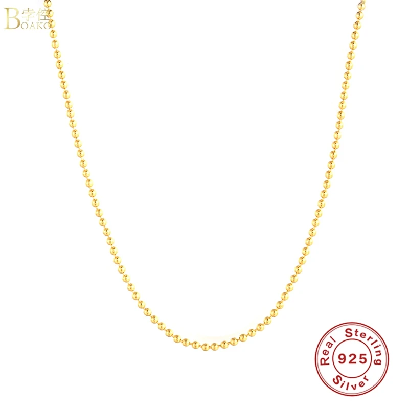 BOAKO 2 мм золотые бусины ожерелье для женщин 2020 серебро 925 ювелирные изделия ожерелья подвески цепи ювелирные украшения ожерелье бижутерия для женщин #12,11