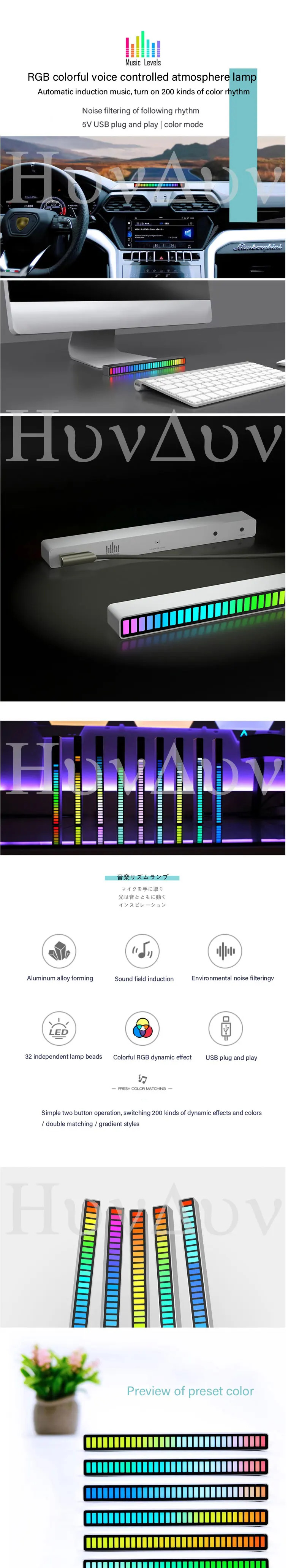 Микрофон Голосовое управление аудио уровень светильник бар цвет RGB музыкальный спектра в машину с USB, туманный распылитель, окружающего светильник аудио Ритм Светильник