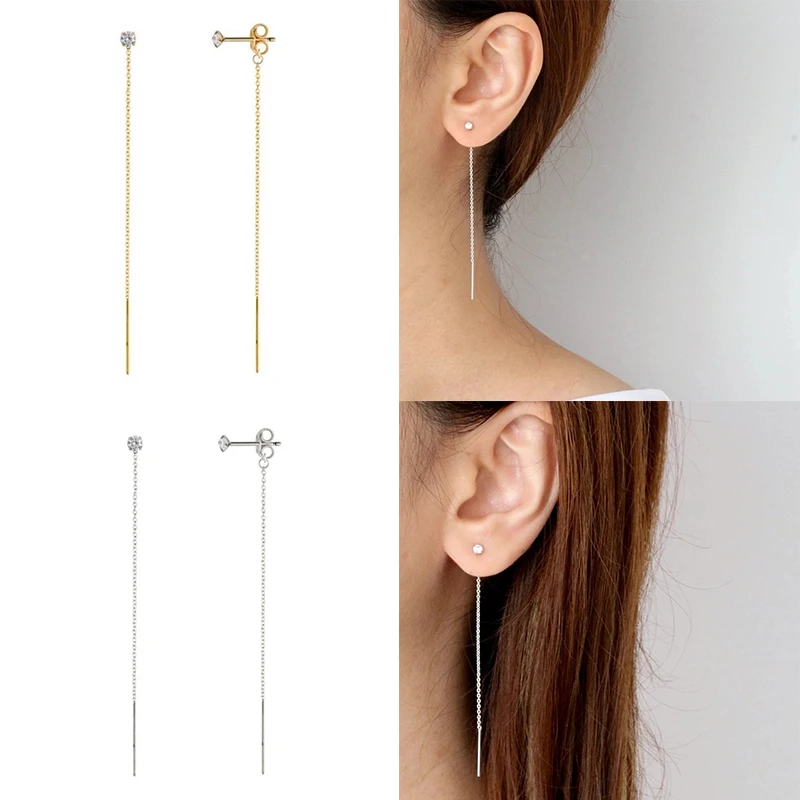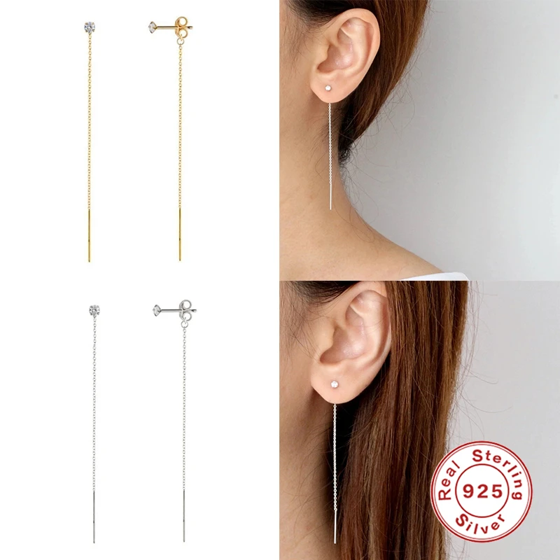 GS 925 Стерлинговое Серебро длинная цепь кисточкой серьги линии с у...