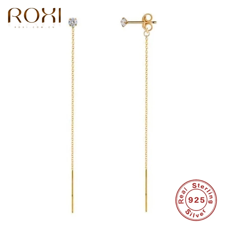 Женские длинные серьги-гвоздики ROXI, элегантные серьги-гвоздики с кристаллами, 925 Висячие серьги из серебра 925 пробы украшения для ушного хряща Особенность