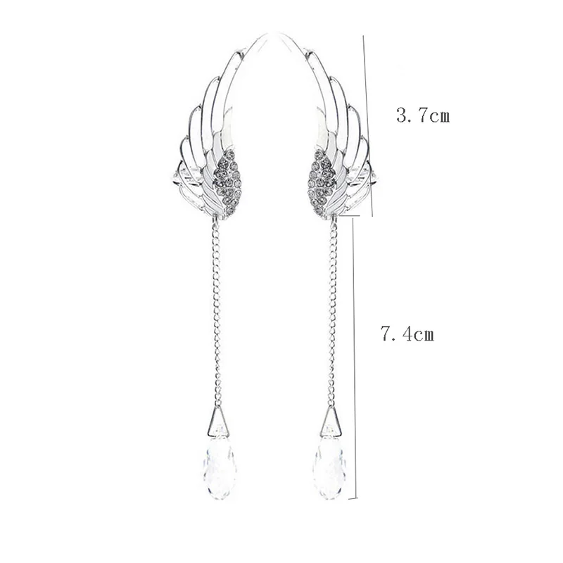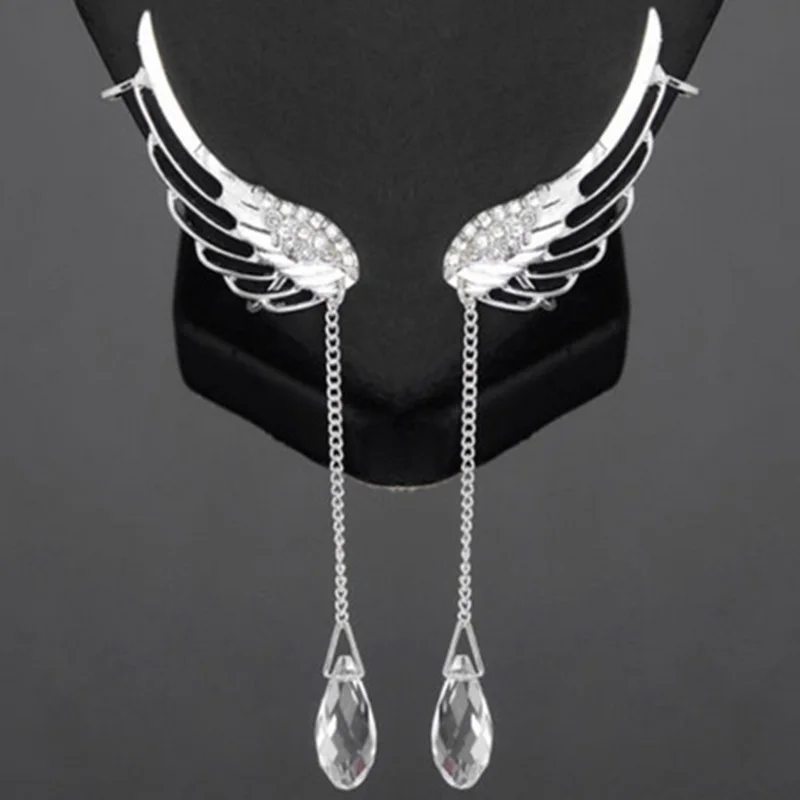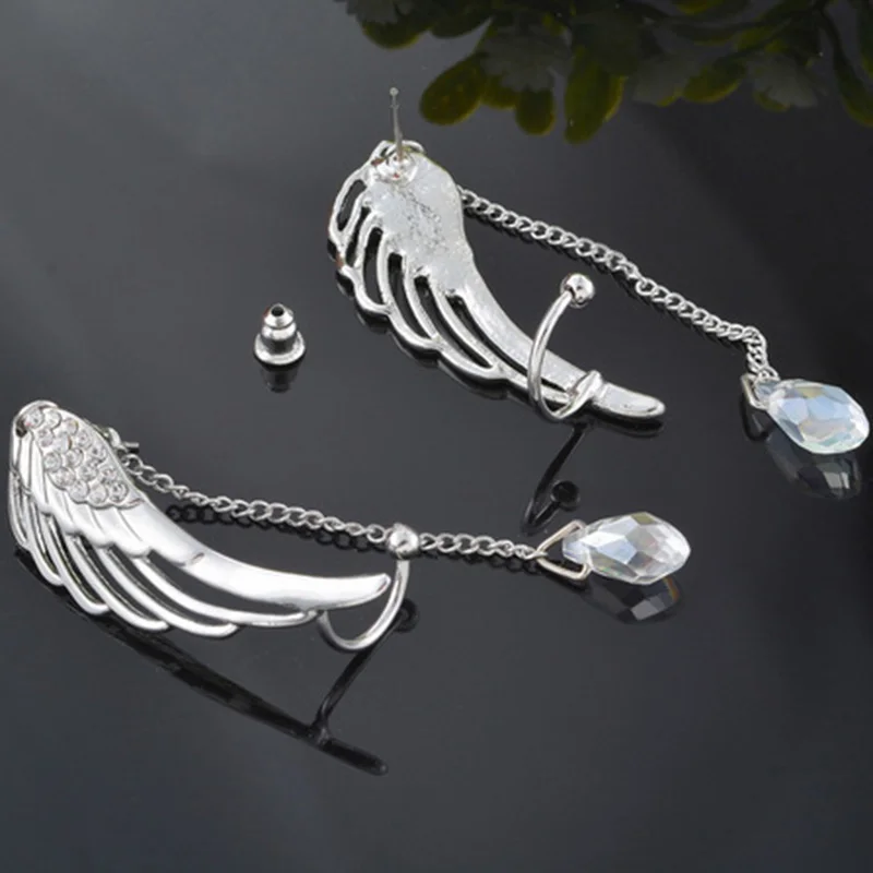 Женские серьги-каффы, длинные посеребренные серьги-гвоздики в форме крыльев Ангела с кристаллом, 2021, богемные ювелирные изделия, серьги-подвески в форме капли