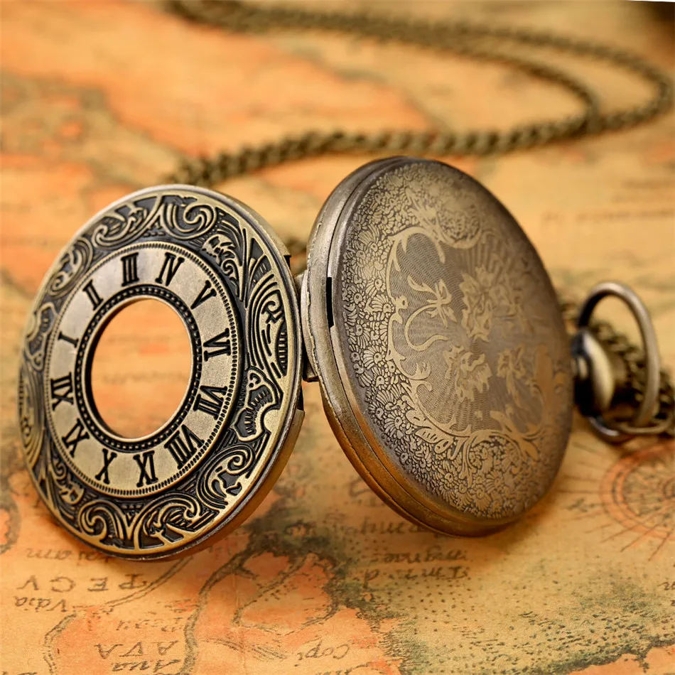 Ретро бронзовые полые кварцевые карманные часы с римскими цифрами, ...