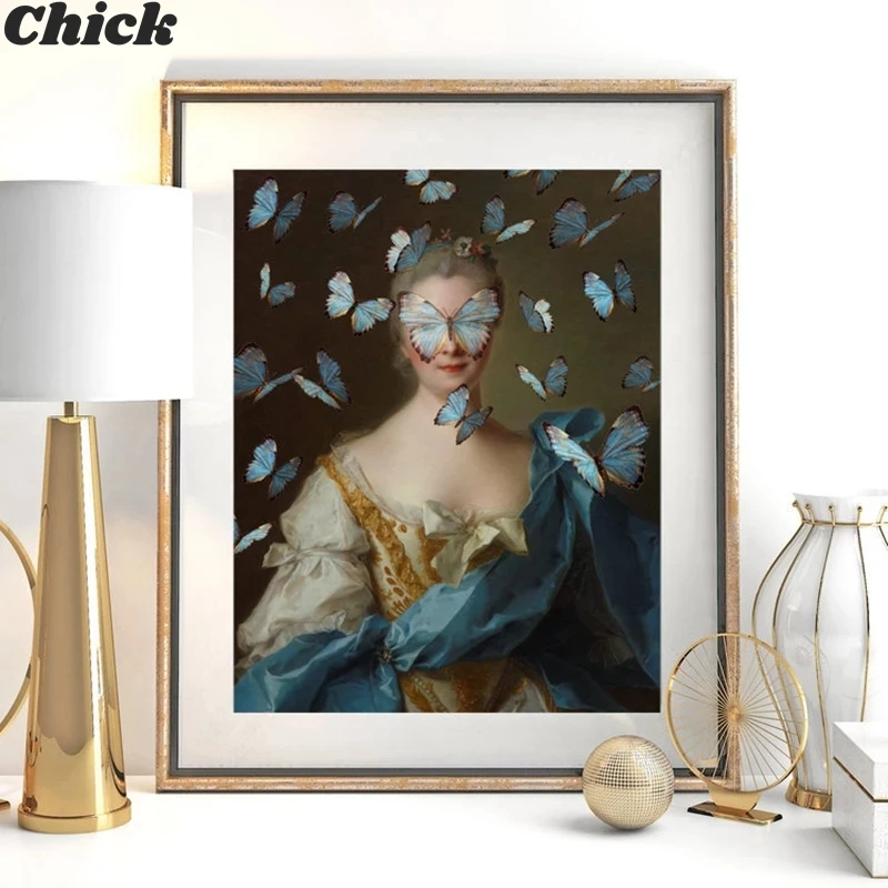 Измененный винтажный портрет эклектическая печать максимальное Искусство Холст Картина Женская настенная сурреал рококо барокко постер домашний Настенный декор