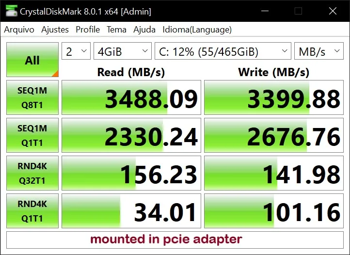 Как в описании. Я сделал тесты на картах X79, которые у меня были на данный момент с PCI-E ger 3. Но даже тогда производительность Фантастическая. Испытания были сделаны непосредственно на материнской плате и с адаптером NVMe/PCI-E. Отличное качество, как описано. Сделали тесты на плате X79 доступен для него вовремя с PCI-E ger 3. Но все еще производительность Фантастическая. Испытания были сделаны непосредственно на материнской плате и с адаптером NVMe/PCI-E