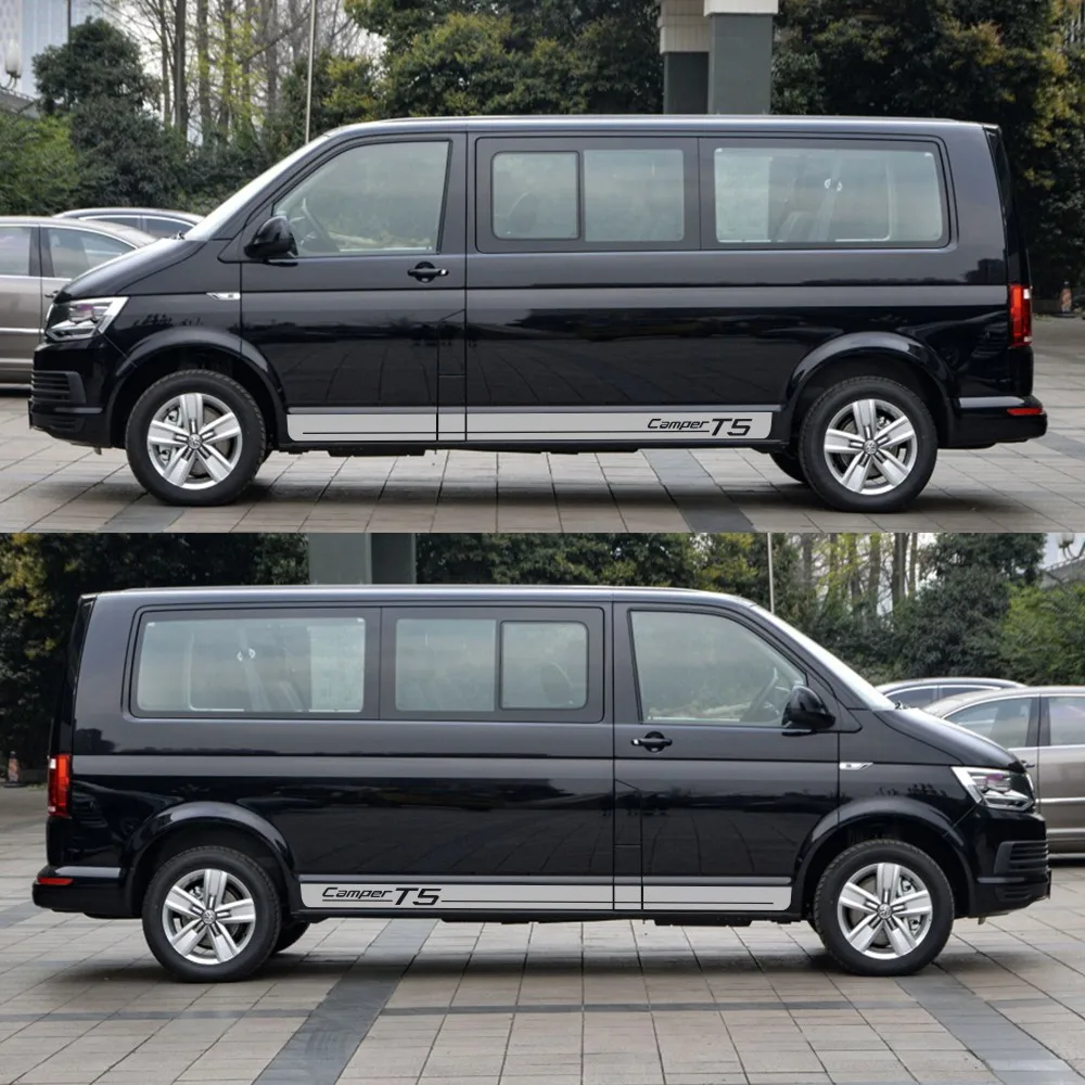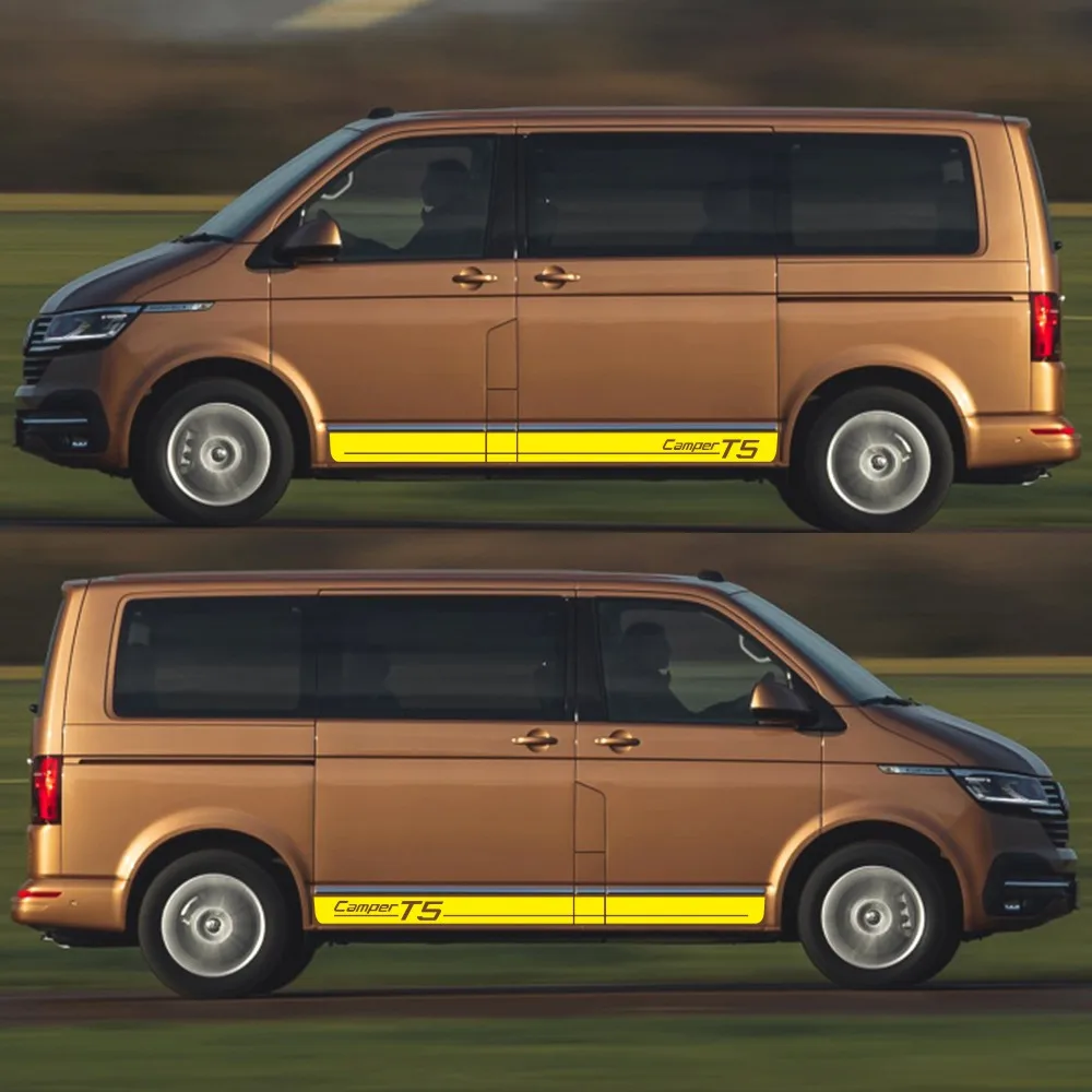 Наклейки на боковую юбку автомобиля, виниловые наклейки в полоску для VW Transporter Camper T5, 2 шт.