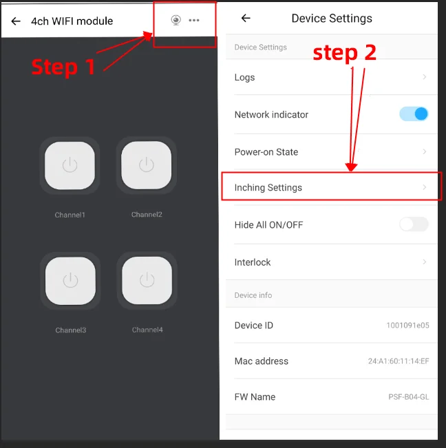 Примечание:1CH модуль поддерживает режим инчинга/самоблокирования.4CH модуль поддерживает режим инчинга/самоблокирования/режим блокировкиСамоблокировка: каждый канал может быть включен/выключен отдельно. Вы можете включить/выключить все каналы одновременно.Режим блокировки: Включите один канал, другие каналы будут выключены автоматически.Автофиксацией/шаговым управлением режим: Включите один канал, канал автоматически закроется после 0,5 секунд. Другие канал такой же, как и в описании канала.