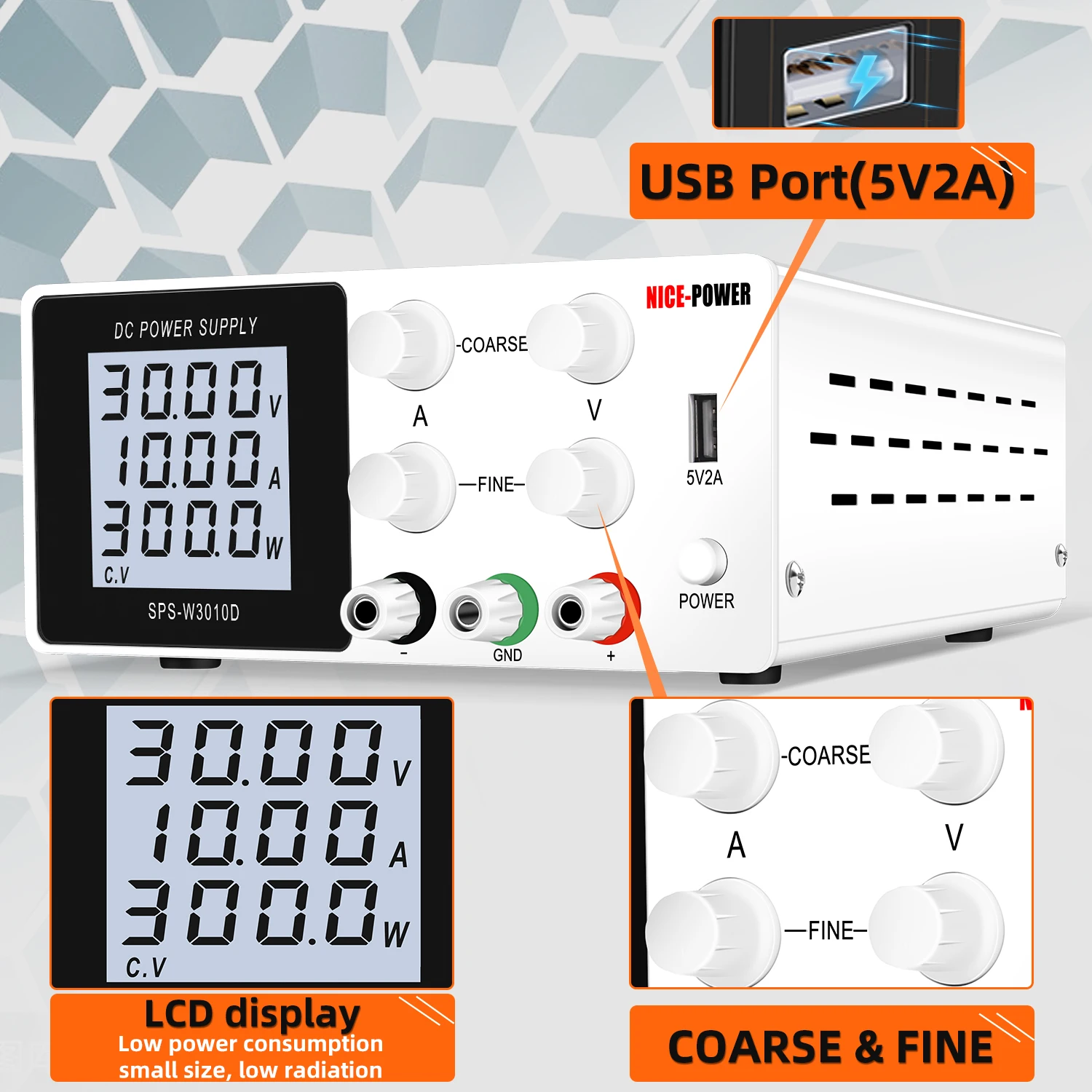 С функцией выключателя питания и кнопкой вывода тока, настольный источник питания хорошо подходит для лабораторий, школ, электрического обслуживания, diy электроники, любительского, подходит для лабораторного и промышленного использования.