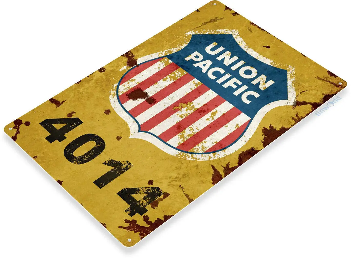 Логотип железной дороги Union Pacific, железнодорожная дорога, деревенский Ретро Настенный декор, металлический жестяной знак 8x12 дюймов