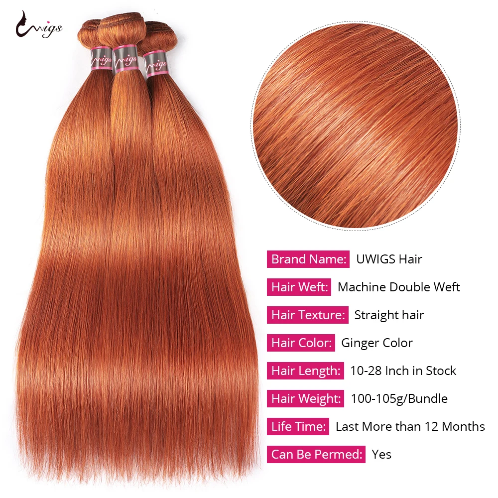 UWIGS оранжевый имбирь Цвет пряди прямые вплетаемые волосы 8-28 дюймов бразильские 100% человеческие волосы пряди человеческих волос для наращивания волос