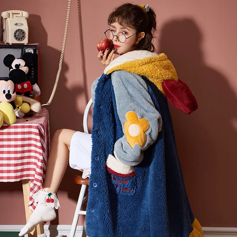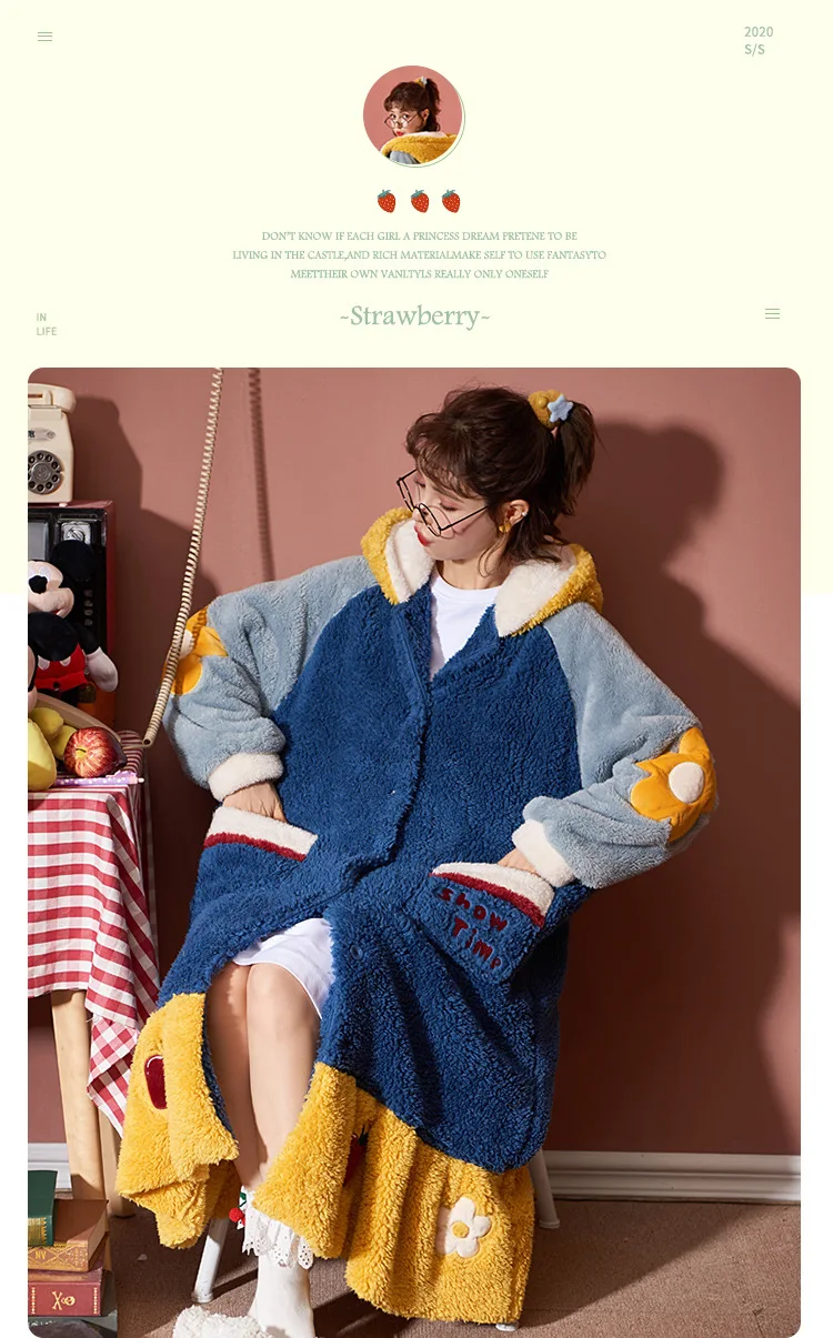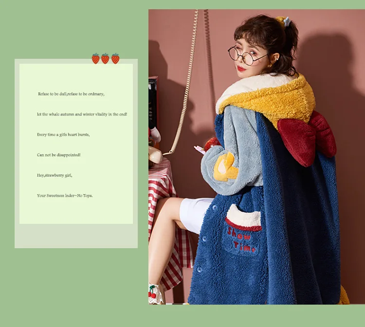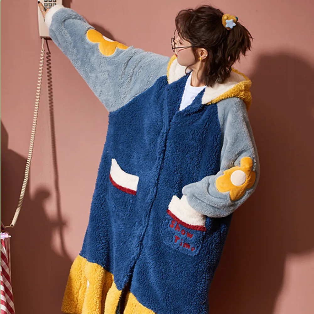 Foply коралловый флисовый ночной халат синий новый мягкий с длинным рукавом Домашняя мода Повседневный стиль кимоно юката с передним карманом женский халат