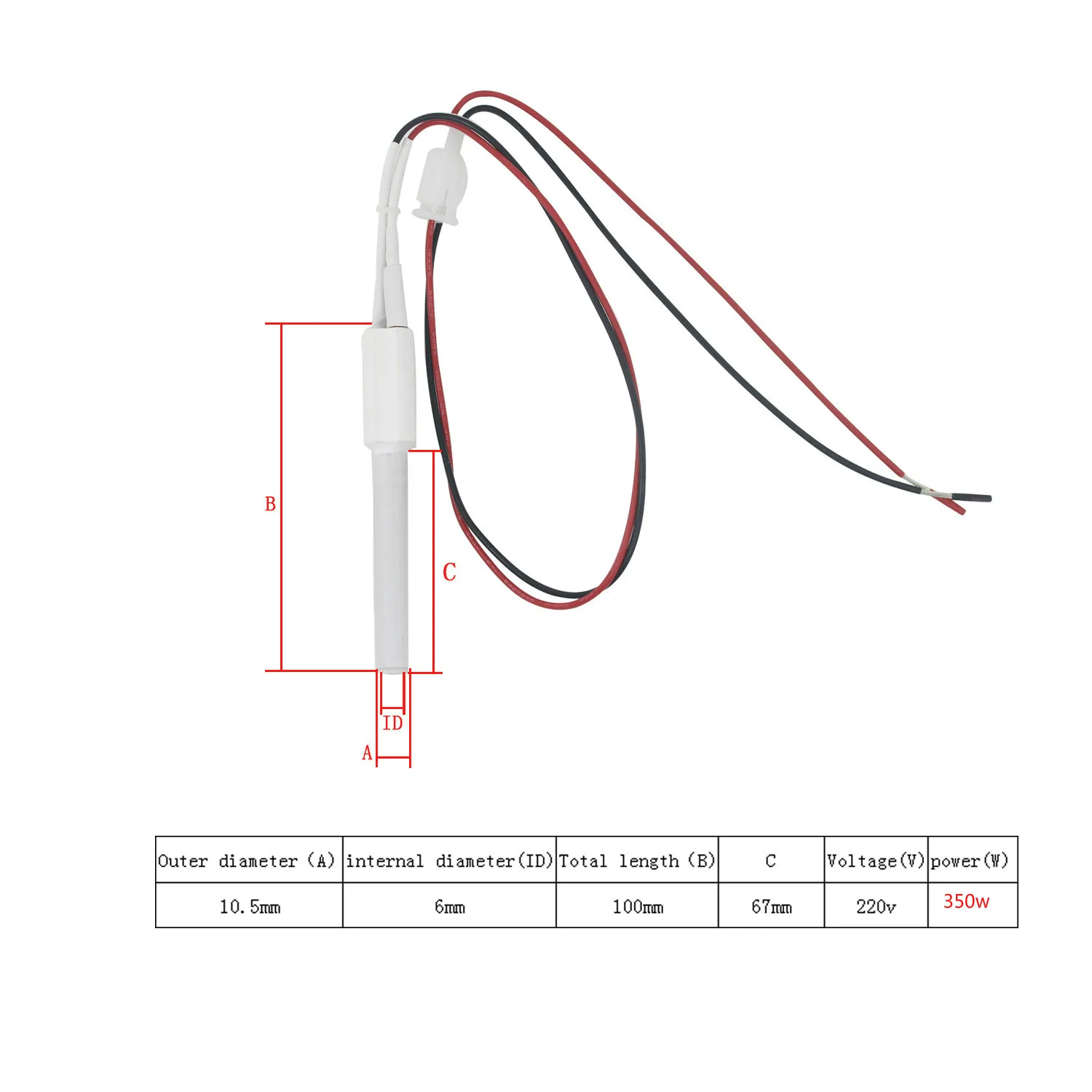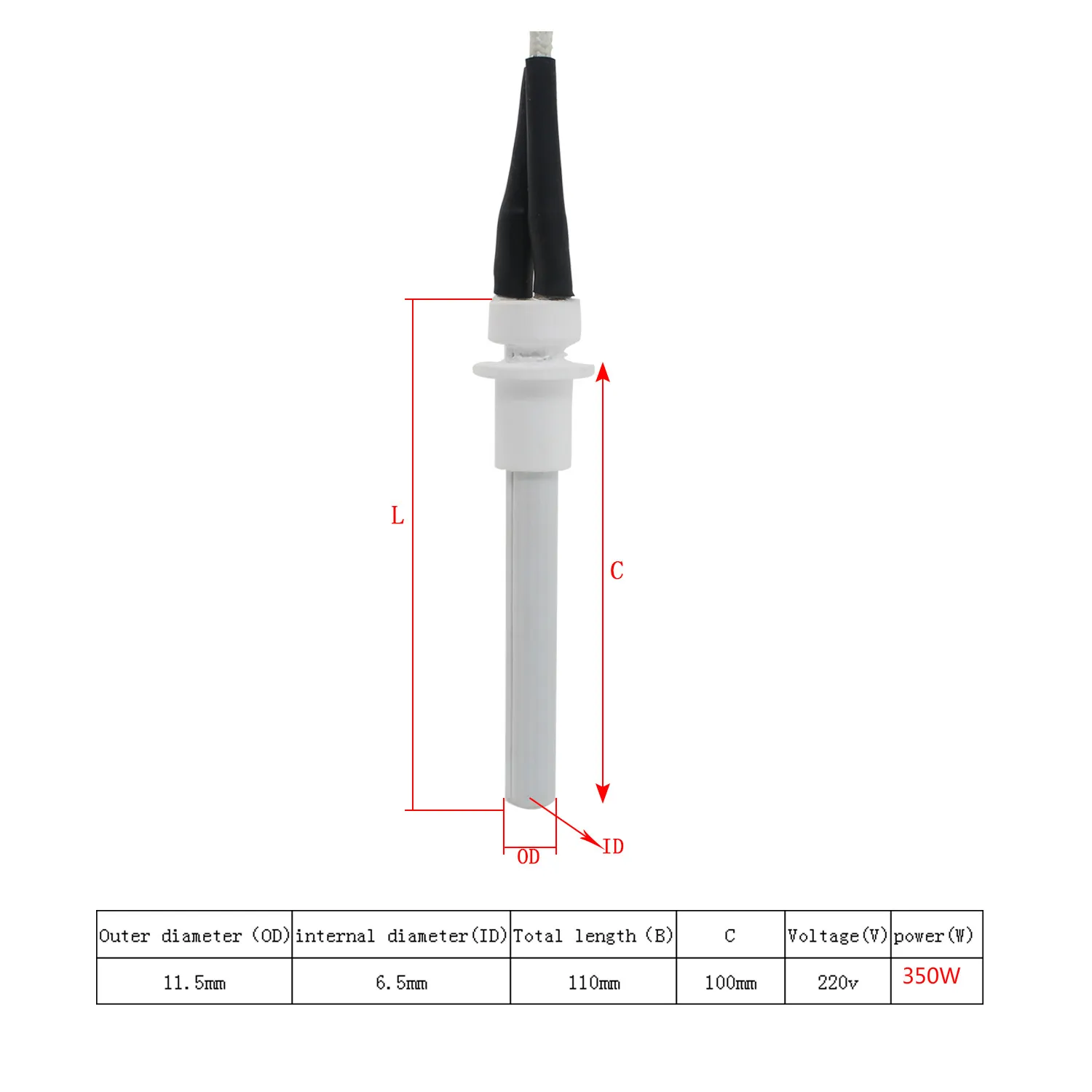 220 В 350 Вт пеллетная горелка, черный керамический воспламенитель, керамический нагревательный патрон Tubespark для подставки пеллетных 100*6*11,5 мм 6,5*110 * мм